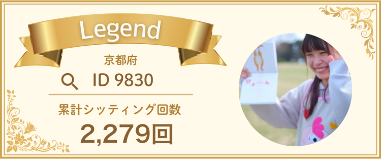| 🏅レジェンドシッター賞 | これまでの累計シッティング回数・時間が全国トップクラスの方 |