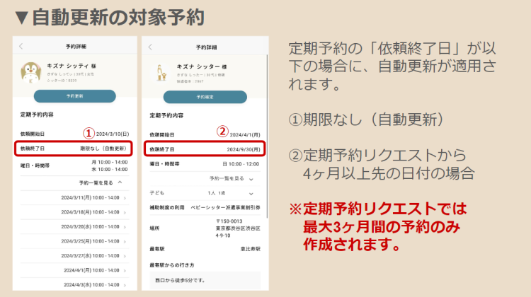 ②依頼終了日が4ヶ月以上先の場合(例:依頼開始日が4/15~の定期予約リクエストの場合、依頼終了日が7/1以降であれば対象になります。)